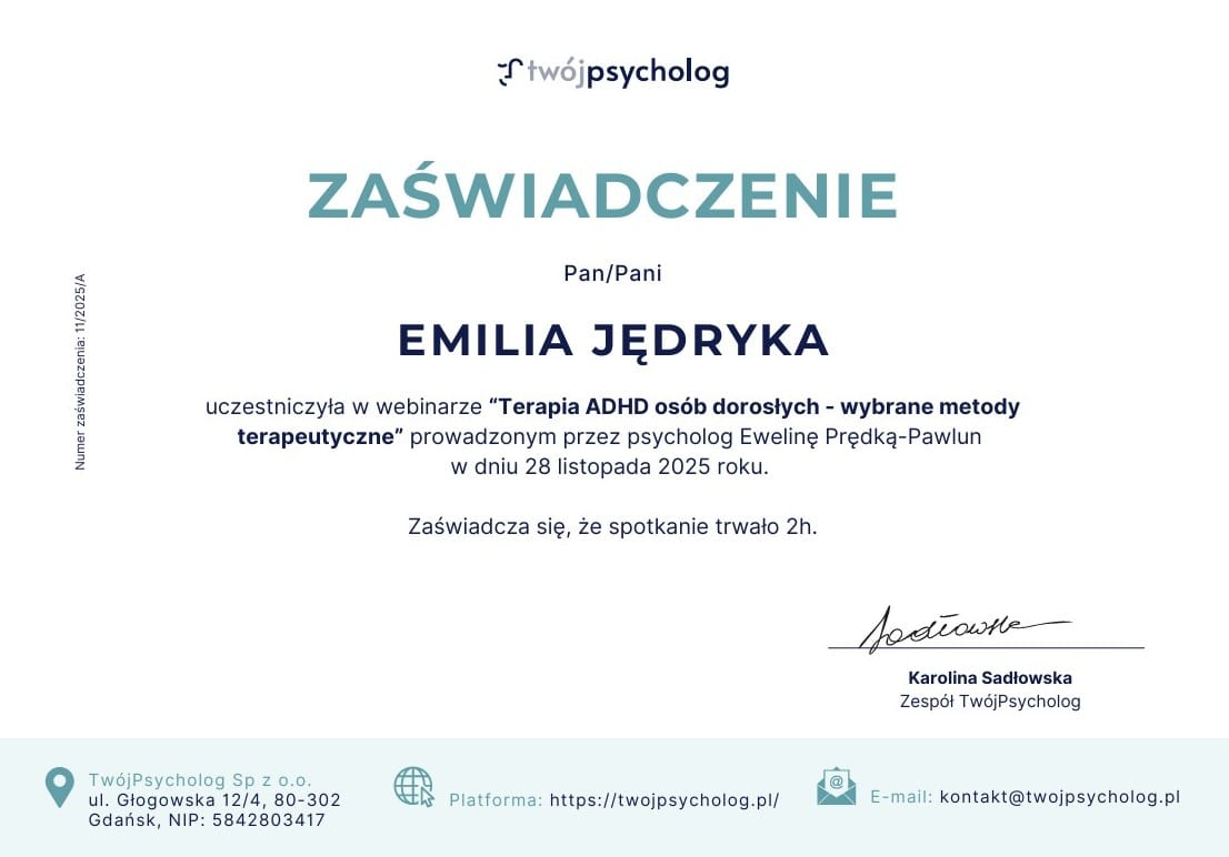 Regularnie uczestniczę w szkoleniach oraz superwizji, aby być jak najlepszą pomocą dla Was.